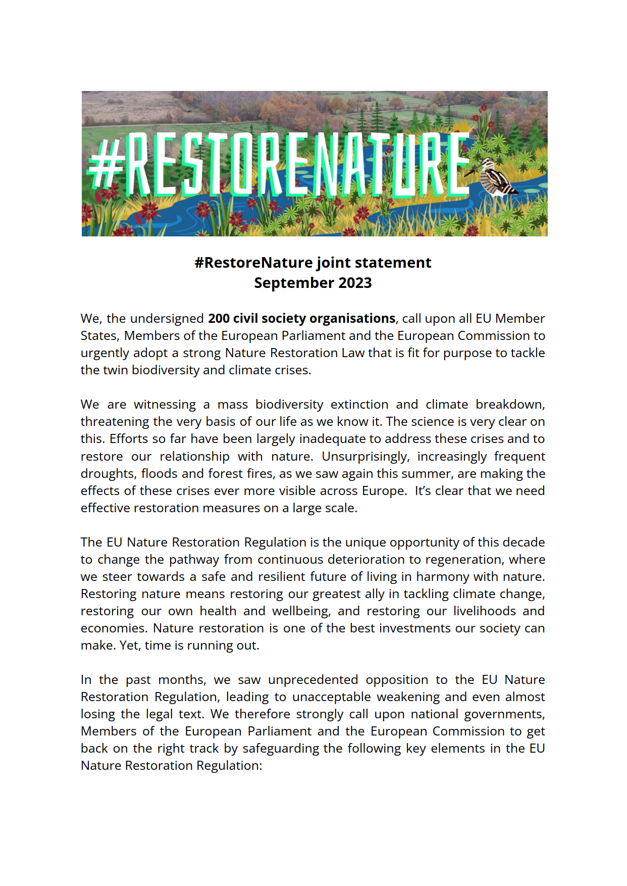The EU Nature Restoration Law is a historic opportunity to bring nature back to Europe. It is a key and unique opportunity to tackle the twin biodiversity and climate crises, while also creating numerous benefits for our health, economy, food security and overall well-being. Restoring our ecosystems adequately is more than ever mandatory.